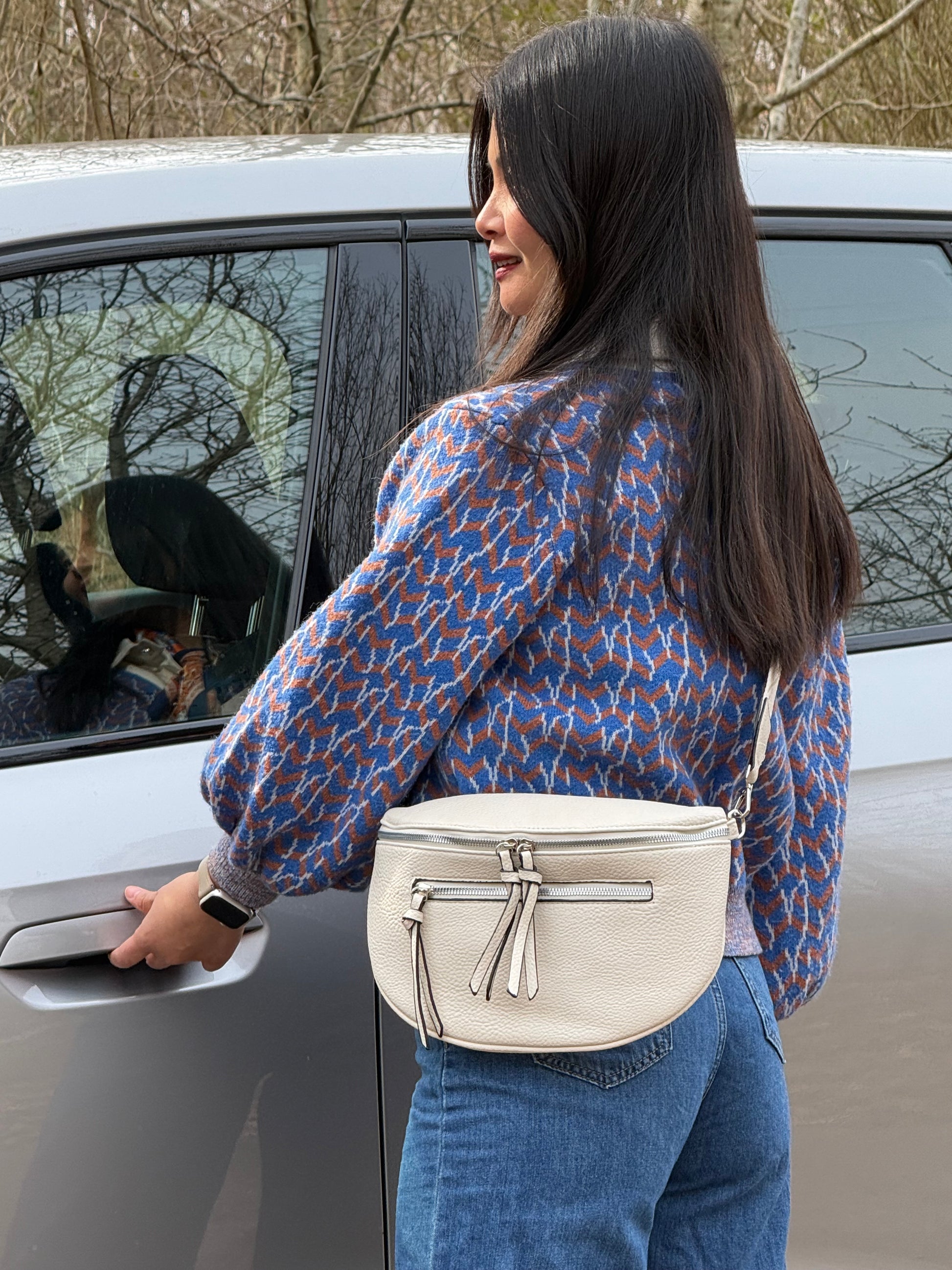 Justerbar rem: Den justerbare rem giver mulighed for individuel tilpasning, så tasken kan bæres komfortabelt hele dagen – som crossbody eller om livet.